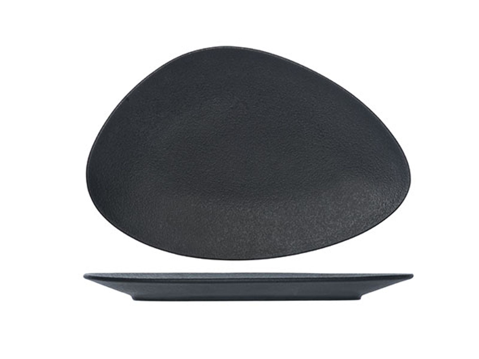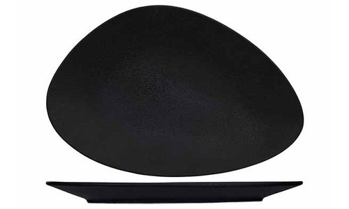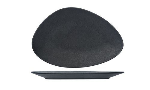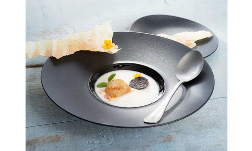 In porselein, wat de bediening vergemakkelijkt, want lichter dan aardewerk. Heeft ook een meer geraffineerde look dan aardewerk. Bovendien garandeert de verhoogde rand een vlotte bediening.