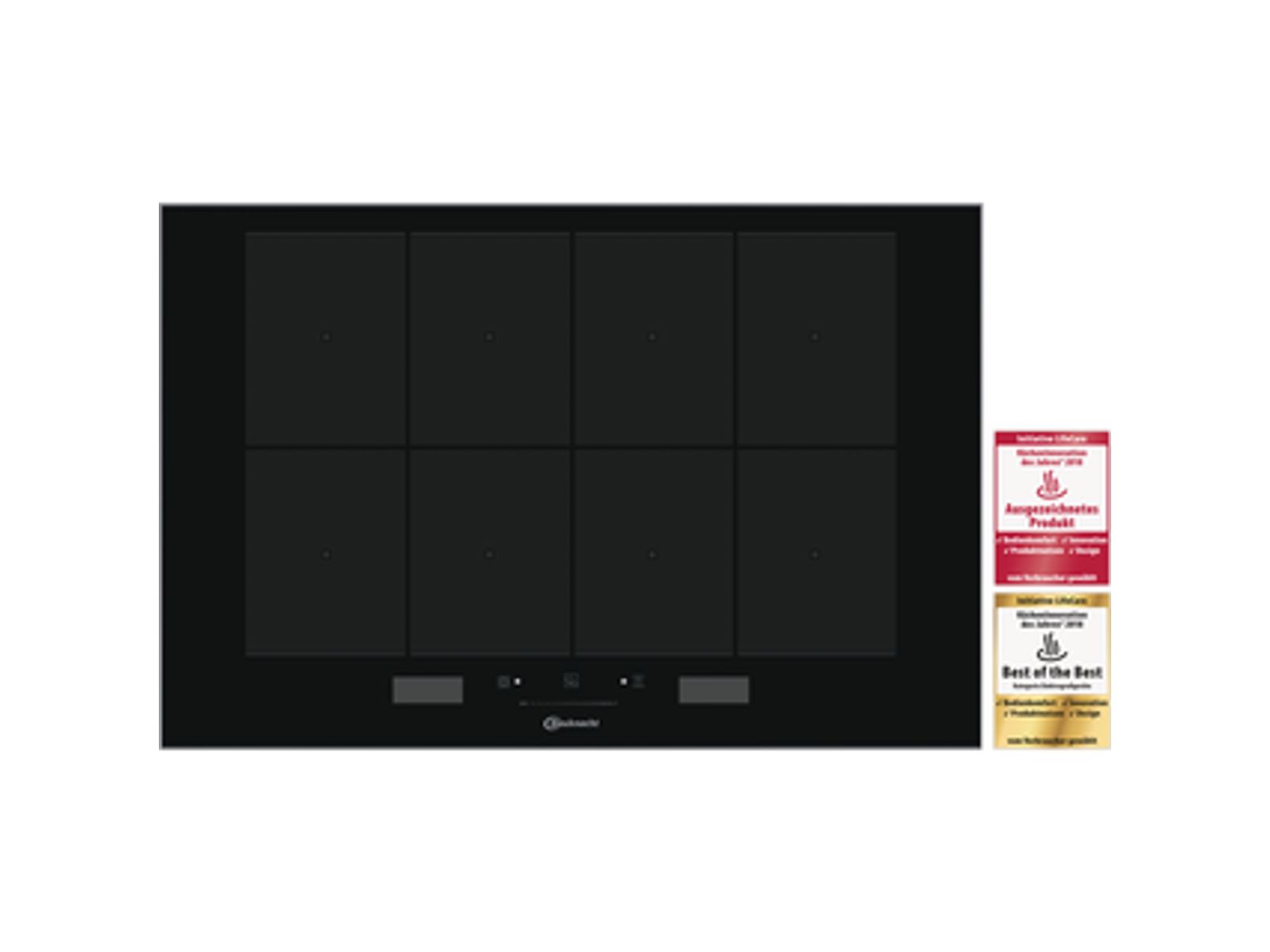 Deze inductiekookplaat heeft 8 afzonderlijke inductiespoelen. Daarmee kunt u haar ofwel als één grote kookzone met gelijke temperatuur gebruiken ofwel onderverdelen in 8 kookzones met apart instelbaar temperatuurniveau.