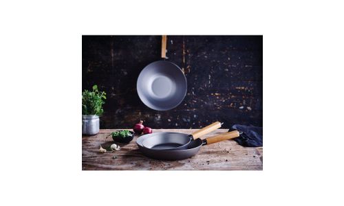 - Staal op zijn best: bevat geen PTFE en geen chemische stoffen. Maak zelf een gezonde antikleeflaag op basis van natuurlijke olie. De patinalaag wordt steeds beter door (veelvuldig) gebruik. Hoe zwarter de wok, des te beter de antikleefeigenschappen. Bekijk onze instructievideo over inbranden van een Nomad pan!