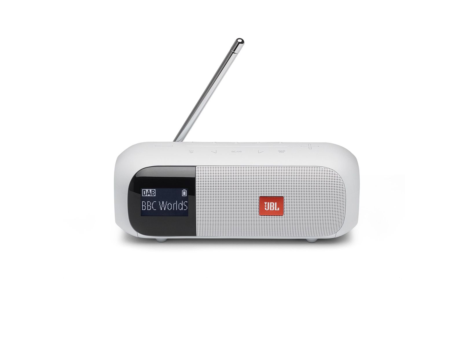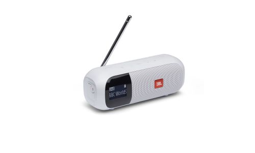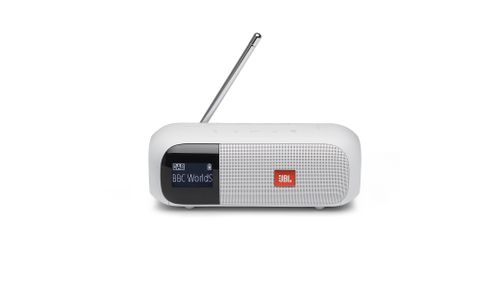 In de keuken. Bij het zwembad. In het park. Je kunt je favoriete FM-radiostations overal mee naartoe nemen. De slanke JBL Tuner 2 FM is een compacte, draagbare radio met kristalhelder geluid, Bluetooth en 12 uur afspeeltijd. Schakel snel naar je favoriete zenders dankzij 5 vooraf ingestelde knoppen en eenvoudig leesbare zenderinformatie op het scrollende lcd-scherm. De radio is IPX7-waterproof en is dus bestand tegen een eventuele regenbui. Uren luisterplezier. Van het nieuws en het weer in de ochtend tot muziek en entertainment in de avond.
