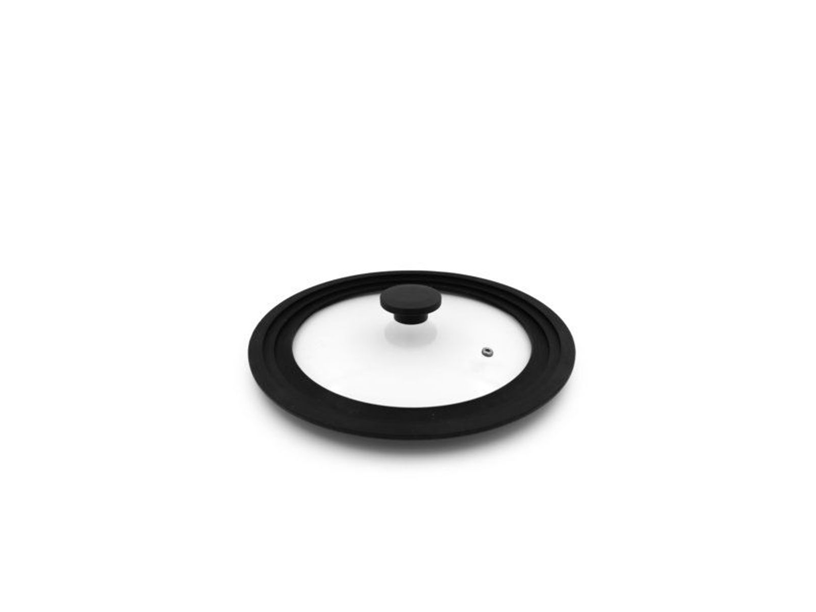 - Het centrum van het deksel is gemaakt van duurzaam glas en bevat een ventilatiegaatje om stoom te laten ontsnappen, waardoor overkoken voorkomen wordt.