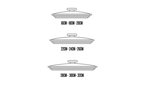- Deze 3 in 1 deksel met gelaagde siliconen rand is geschikt voor ALLE kookpotten in diameters: 28, 30 en 32 cm.