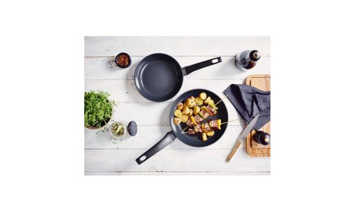 Maak kennis met Kuro: een volledig zwarte braadpan met keramische coating die een trendy design en functionele eigenschappen combineert om uw kookplezier te garanderen.