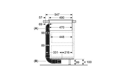 Kit voor kringloopwerking S (voor werkblad van 60 cm) - Afvoerkanalen tot onder meubel/plint